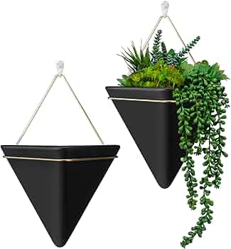 Hangerspace Large Wall Planter 2 Pack Ceramic Planter Indoor Hanging Planter Wall Decor For Succulent Cactus Air Plant Faux Plants Black Gold Amazon Co Uk Garden